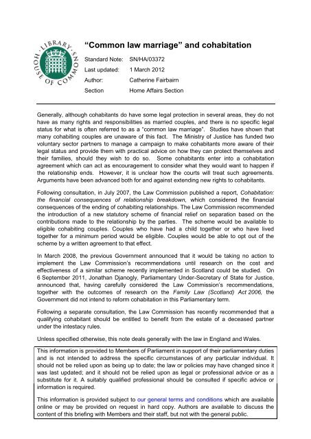 Common Law Marriage And Cohabitation Pdf 18 Parliament