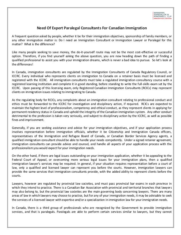 Need Of An Expert Paralegal Consultant For Canadian Immigration