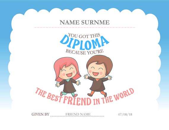Best Friend Editable Diploma Template Fillable Diploma Template Printable Instant Download Skud006