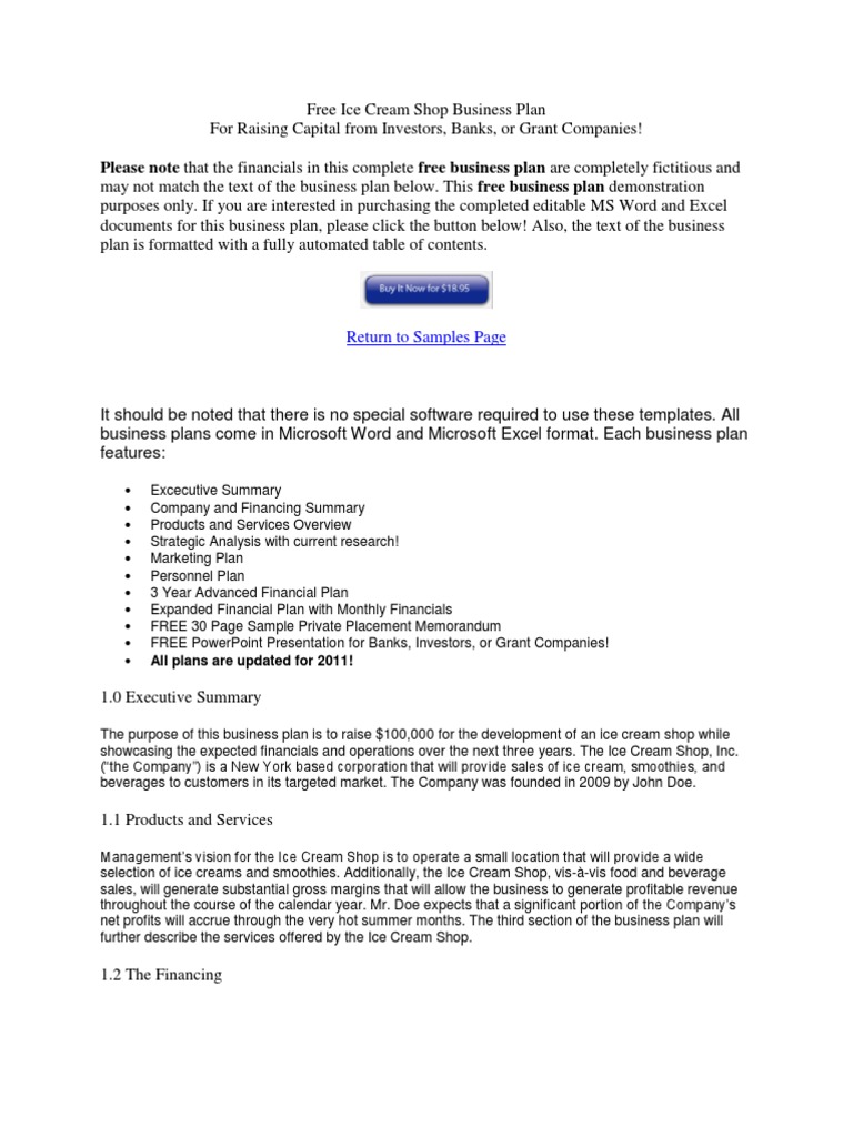 Free Ice Cream Shop Business Plan Business Plan Retail