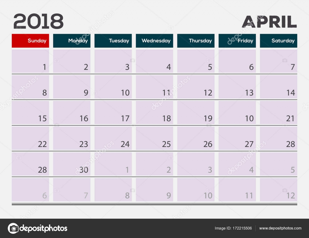 Monthly Desk Pad Calendar Template April 2018 Vector
