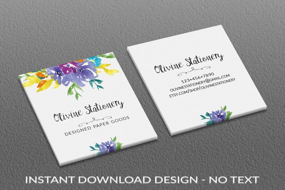 Instant Download Square Business Cards Diy Blank Business Card Template Watercolor Photoshop Vista Printing Vista Printing Blossoms