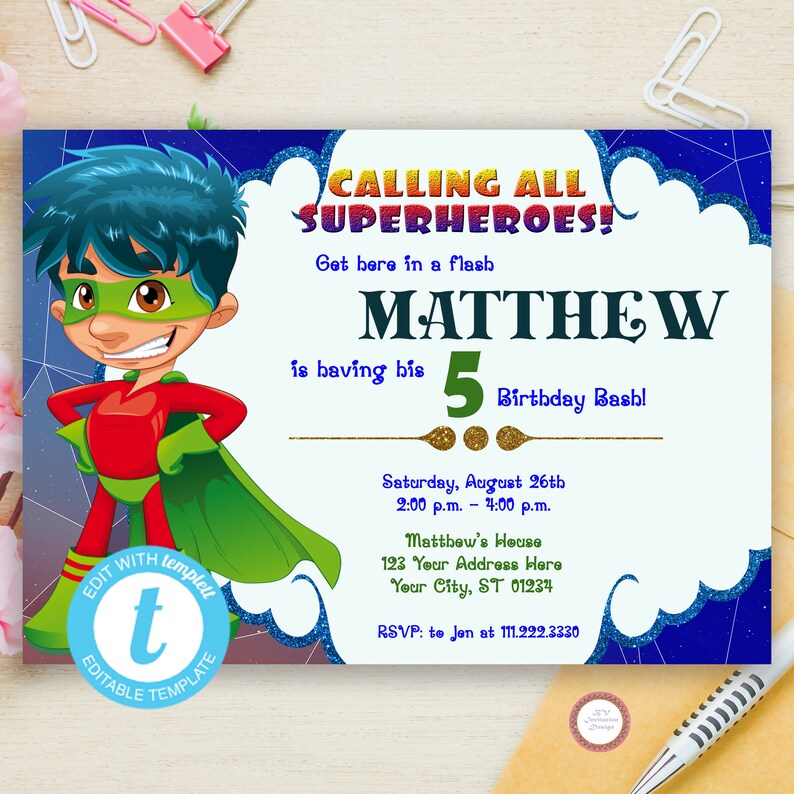Printable Boy Birthday Invitation Superheroes Boy Party Invite Try Before You Buy Digital Party Invitation Template Templett Gim12