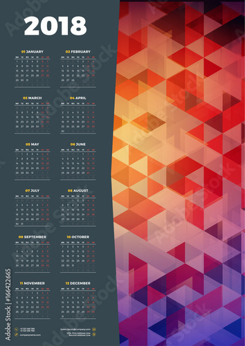 Calendar Design Template For 2018 Year Week Starts On