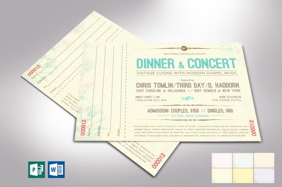Vintage Dinner Concert Ticket Word Publisher Template 6 Extra Backgrounds Size 5 7