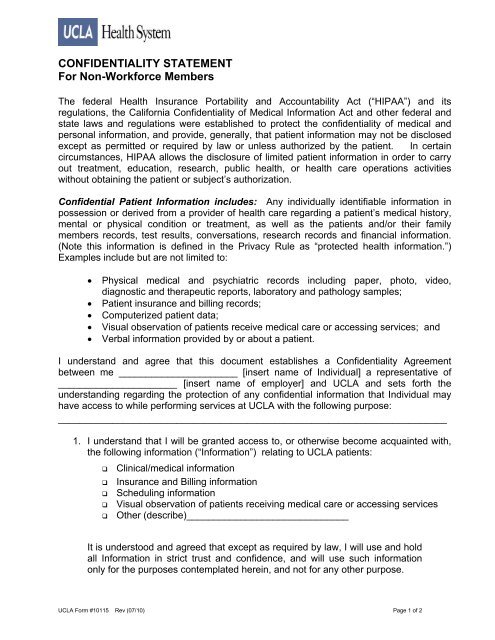 Confidentiality Statement For Non Workforce Members