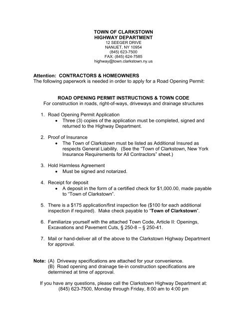 Town Of Clarkstown Highway Department Attention