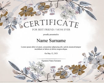 Editable Certificate Template Gift For Mothers Day Gift For