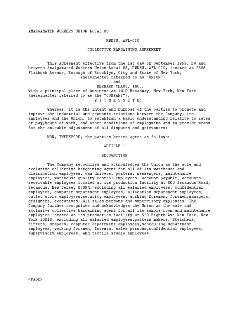 Sample Collective Bargaining Agreement Amalgamated