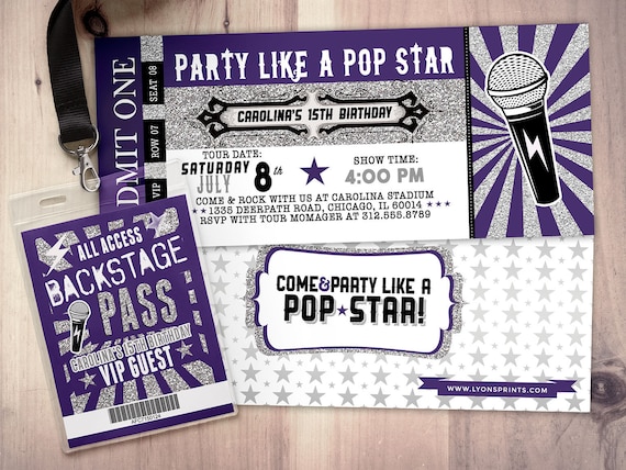 Girl Rock Star Birthday Party Concert Ticket Invitation On