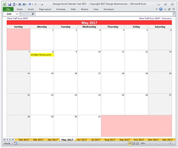 2017 Calendar Template For Excel By Excelmadeeasy