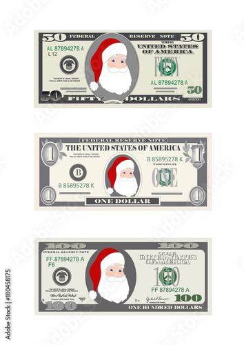 Design Template Dollars Bill With Santa Claus Christmas Set