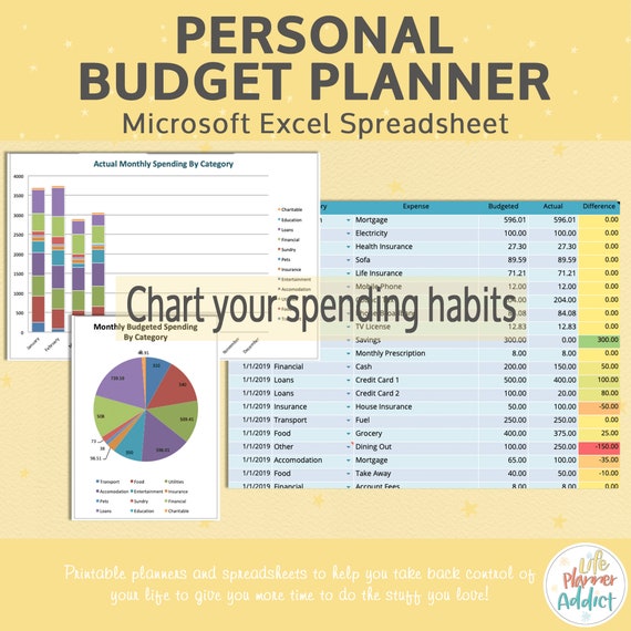 Personal Budget Planner Excel Budget Spreadsheet Template Financial Planner With Expense Tracker And Bill Tracker Record Monthly Expenses