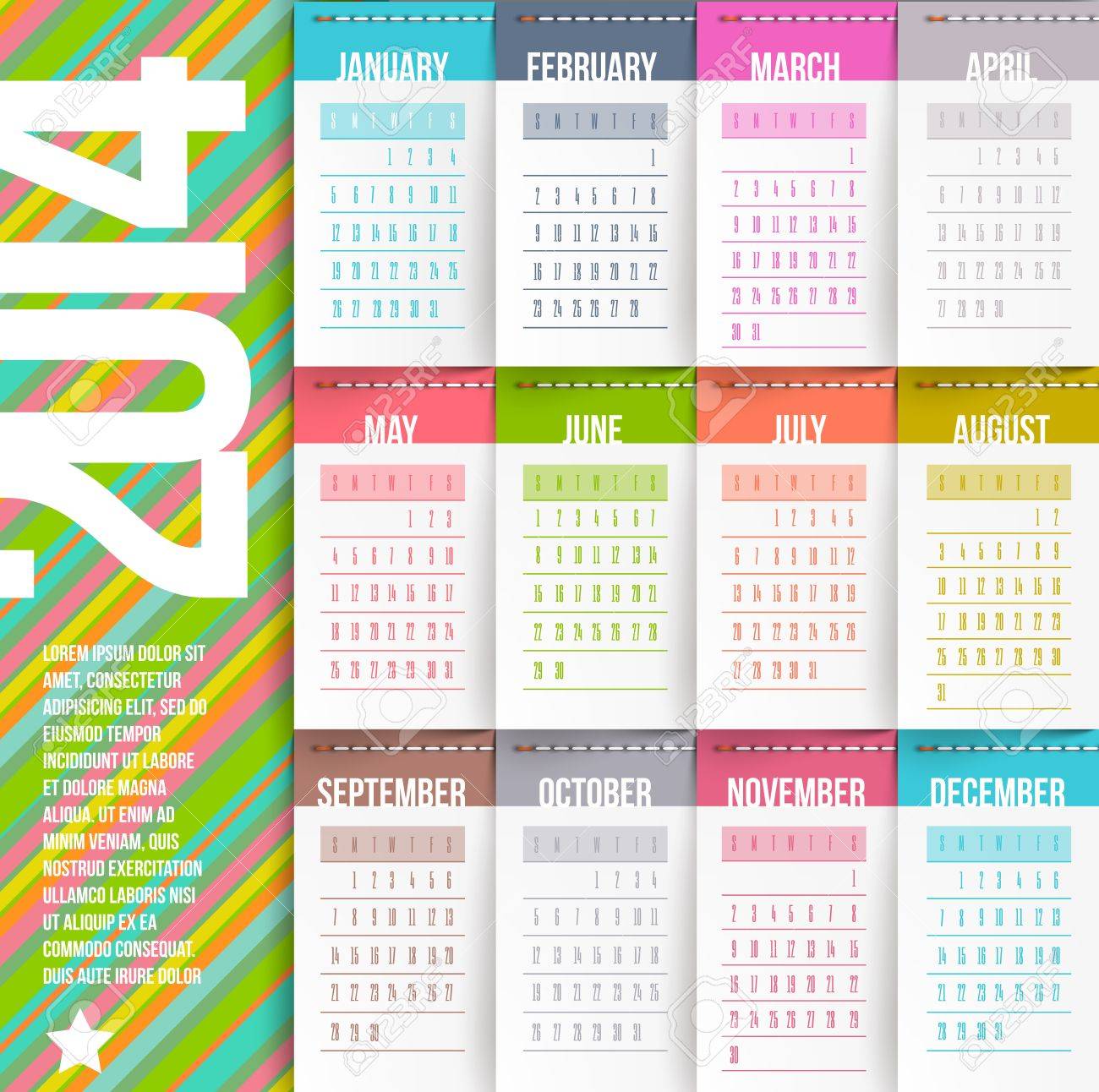 Vector Design Template Calendar Of 2014 With Stitched Labels Months