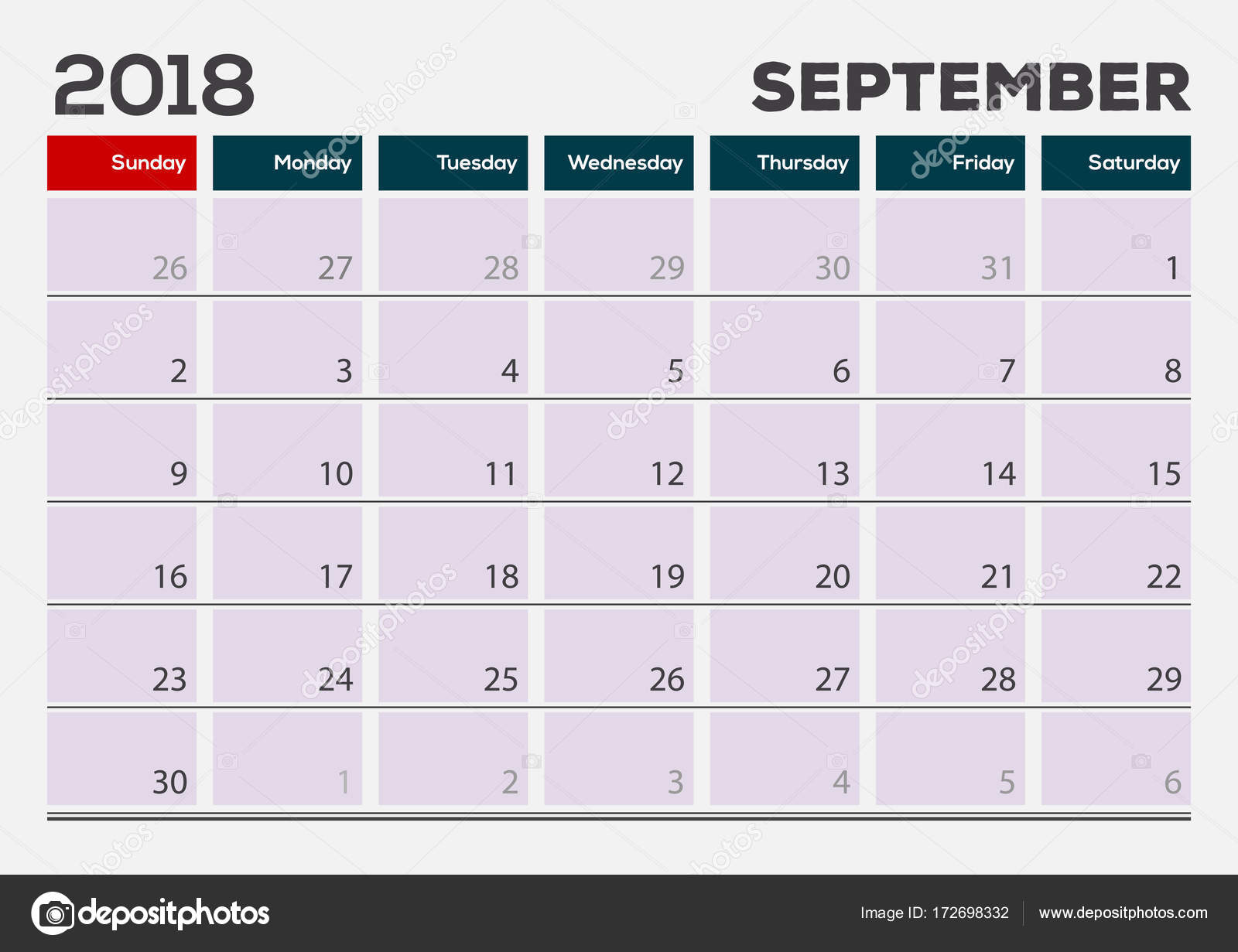 Monthly Desk Pad Calendar Template September 2018 Vector