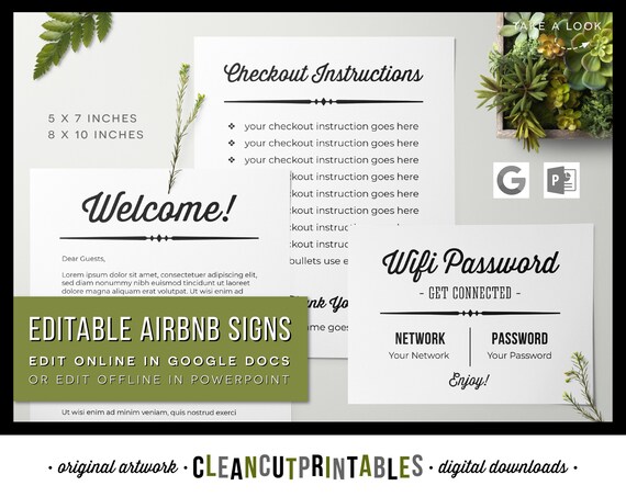 Airbnb Signs Editable Google Docs Templates Vacation Rental Printable Welcome Wifi Password Checkout Rules Guest Book Fillable Pdf Download