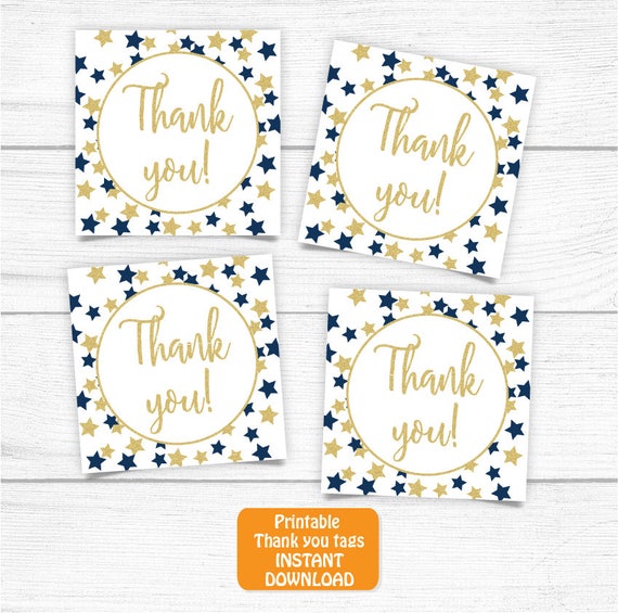 Printable Twinkle Little Star Baby Shower Thank You Tags Gold Navy Blue Stars Favor Thank You Tags Party Favor Labels Instant Download