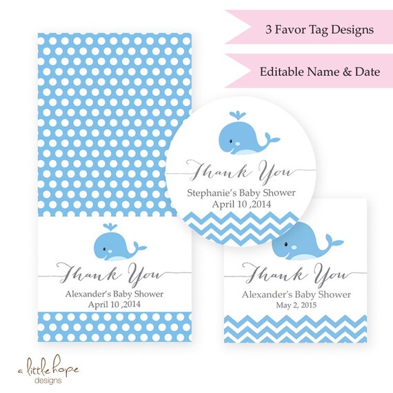Instant Download Editable Text Blue Whale Baby Shower Thank You Tag Printable Instant Download