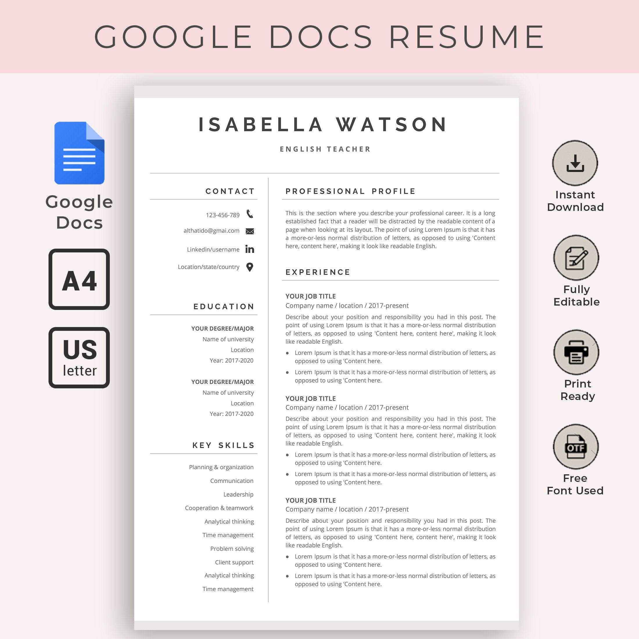 Google Docs Resume Google Docs Resume Template Google Docs Template Instant Download Cv Resume Template Google Docs Cover Letter